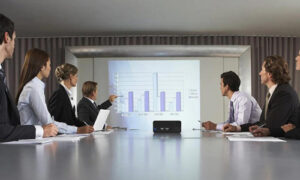 Portable projectors are very easy to set up. Most of these devices are just plug-and-play and many don’t even need the ‘plug’ since they have inbuilt batteries. Connect to your laptop or smartphone and you’re ready. The easy set up means you don’t need to worry about turning up to a venue where the AV may not work or be impossible to use. It’s also easy for artists to showcase their work at exhibitions or utilise creative multi-media displays.